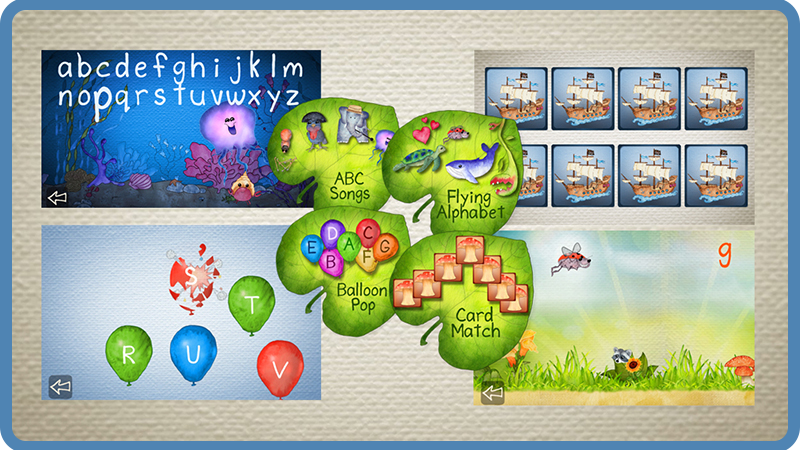 “Inyo ABCs and First Reader” also includes the Flying Alphabet game, where letter names and sounds are again reinforced through 6 fun and challenging levels of flying through the garden as a ladybug collecting letters, and swimming under water collecting letters and kissing whales.
