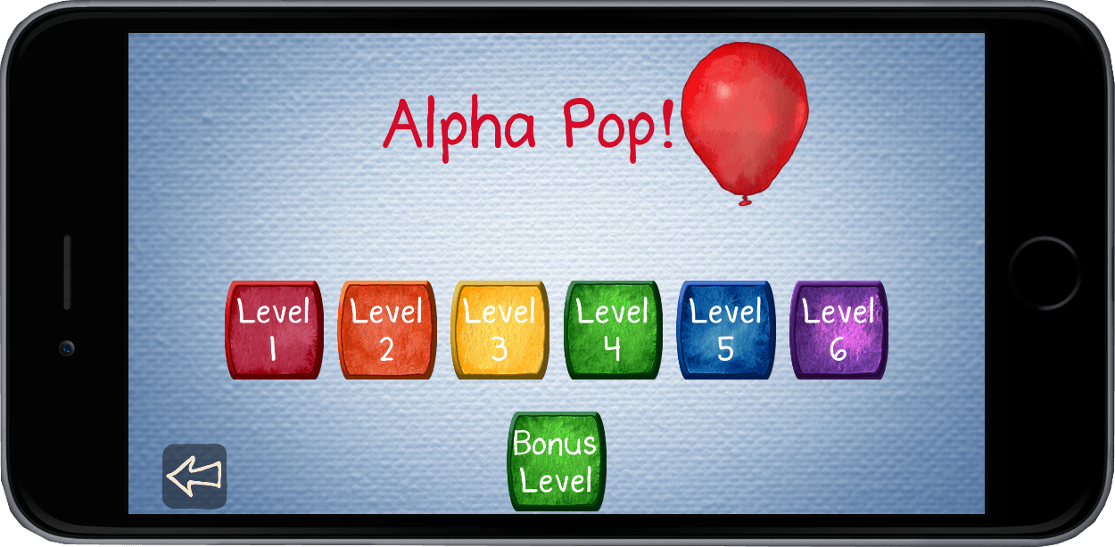 Alpha Pop has 6 different levels (and a bonus level), reinforcing the letter names and sounds in the alphabet, associating capital and lower case letters, learning the alphabetical order, and finally working toward composing three letter words while sharpening hand eye coordination. Each game is randomized, so gameplay is always different.