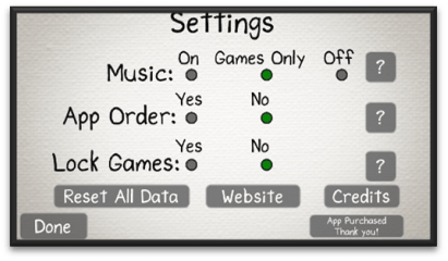 You know that annoying tiny “x” when you’re trying to close an unwelcomed ad window but instead inadvertently click through to the ad? We don’t do that. Our game doesn’t contain ads or in-game purchases, and we’ve designed the interface with big clear obvious buttons and controls so your child doesn’t get frustrated trying to navigate through it. Speaking of annoying, we love our music and think you will too, but maybe not umpteen times, so we’ve added controls for you to turn off the music when your child mysteriously misplaces their headphones, again. We also anticipate that your child will love playing the games, which is why we added the ability to lock the games if you want them to focus on the books for a bit. These settings are kept behind a parental lock screen.